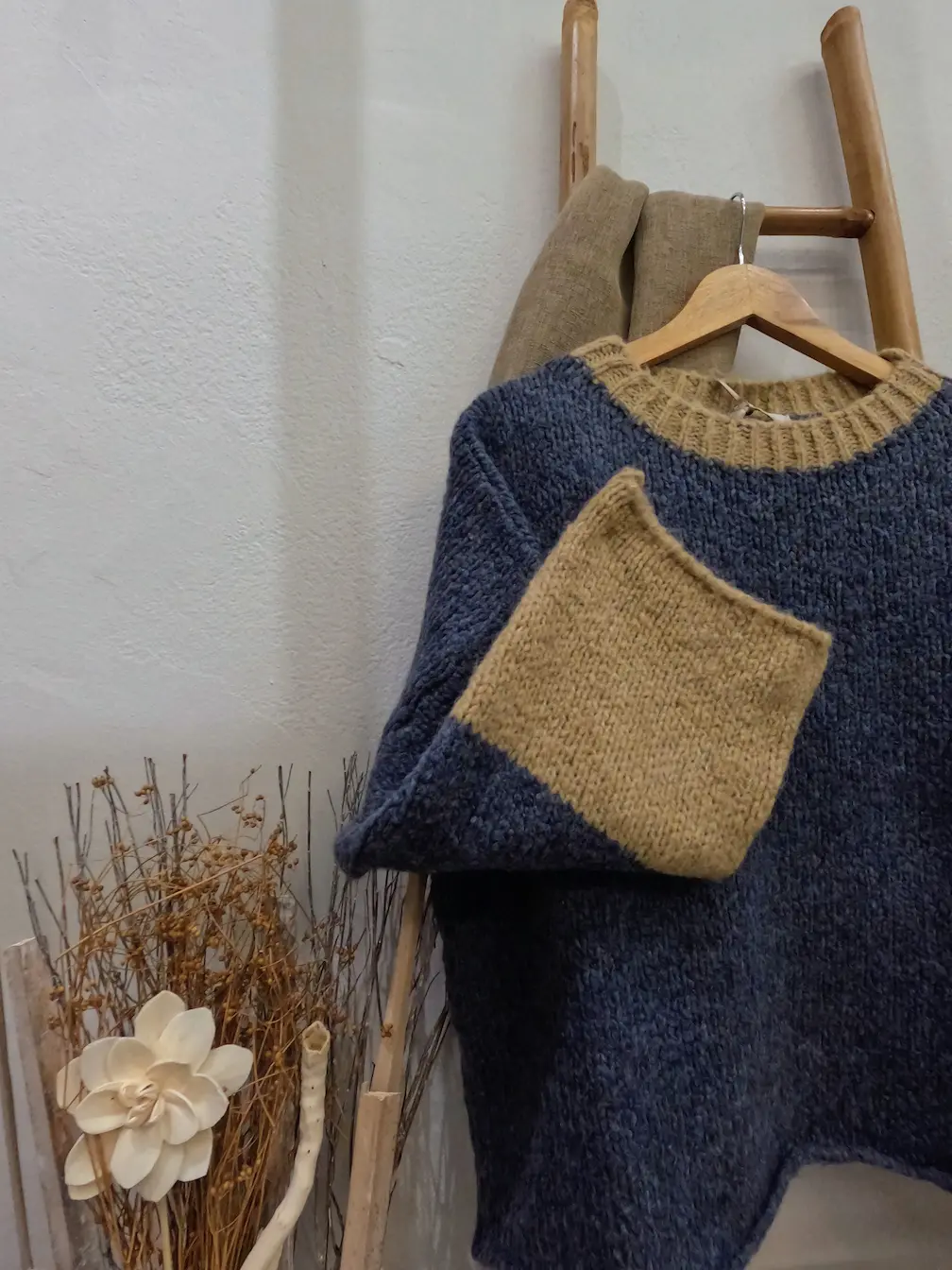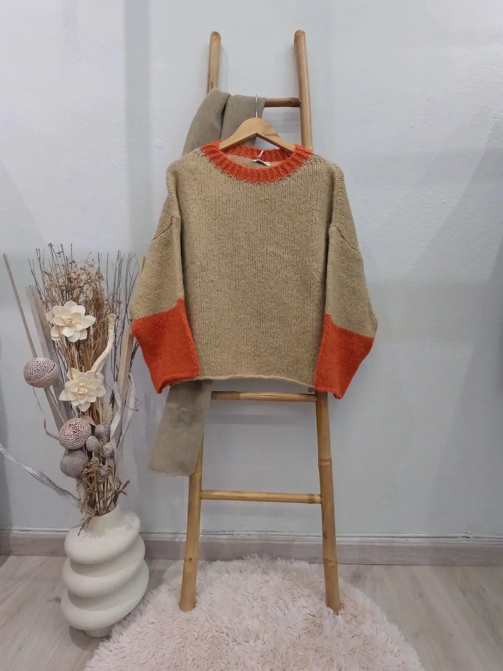 Πλεκτή μακρυμάνικη μπλούζα πουλόβερ one size με στρογγυλή άνετη λαιμόκοψη σε πυκνή χοντρή πλέξη και άνετη γραμμή. Το μήκος του φτάνει λίγο πιο κάτω από το ύψος της μέσης. Ανανεώστε το χειμερινό σας στυλ με αυτό το cozy oversized πουλόβερ, ιδανικό για άνεση και ζεστασιά όλη την ημέρα. Οι διαφορετικού χρώματος λεπτομέρειες στη λαιμόκοψη και στα τελειώματα των μανικιών, προσθέτουν μία μοντέρνα αντίθεση. Συνδυάζεται τέλεια με τζιν παντελόνι ή φούστα, με leggings και πουκάμισο ή ακόμα και με σορτς δερματίνη και over the knee μπότες.